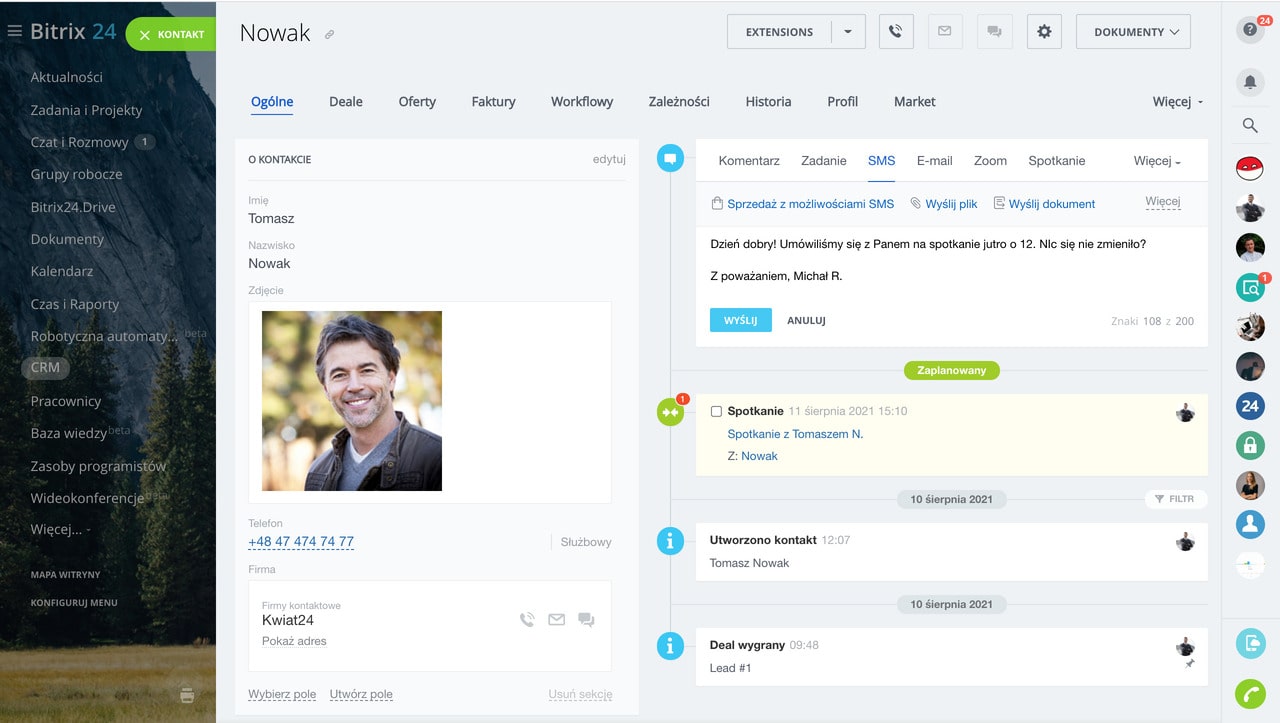 Wszystkie dane i informacje dotyczące komunikacji z klientami znajdują się w jednym panelu kontrolnym. To jest naprawdę wygodne.